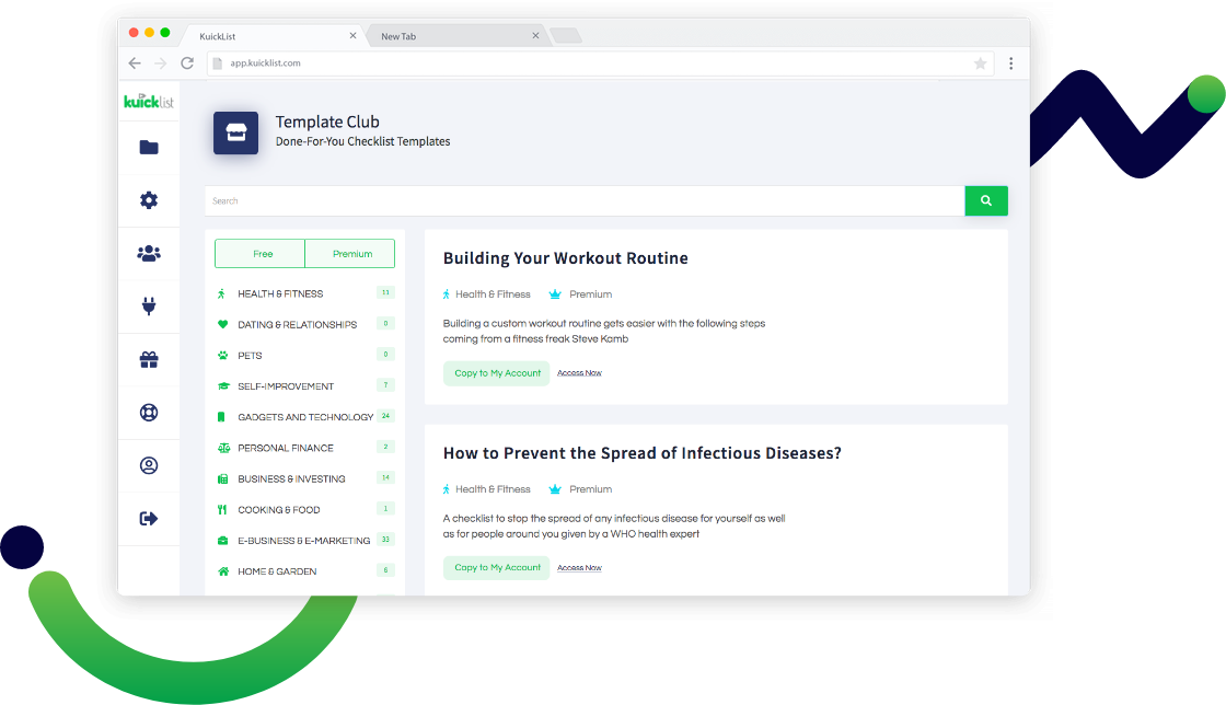 While creating checklists are incredibly easy inside of Kuicklist, we do want to give you a headstart as well. That’s why we’re including 10 done for you templates. These are available as soon as you sign up and login to Kuicklist today.