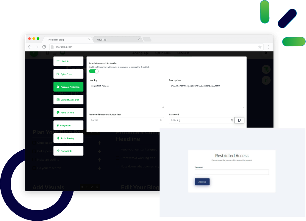 It is easier than ever to protect your checklist with KuickList's password protection feature. Simply set a password from the backend and you are done!